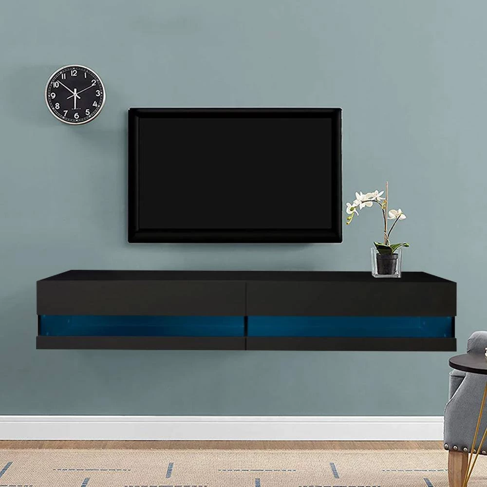This simple and modern floating TV stand is aesthetically embellished on the wall, adding storage and display space. The wall-mounted type saves more space, makes reasonable use of wall space, saves the ground, and facilitates cleaning. There are different colors to choose from. Modern and unique design.