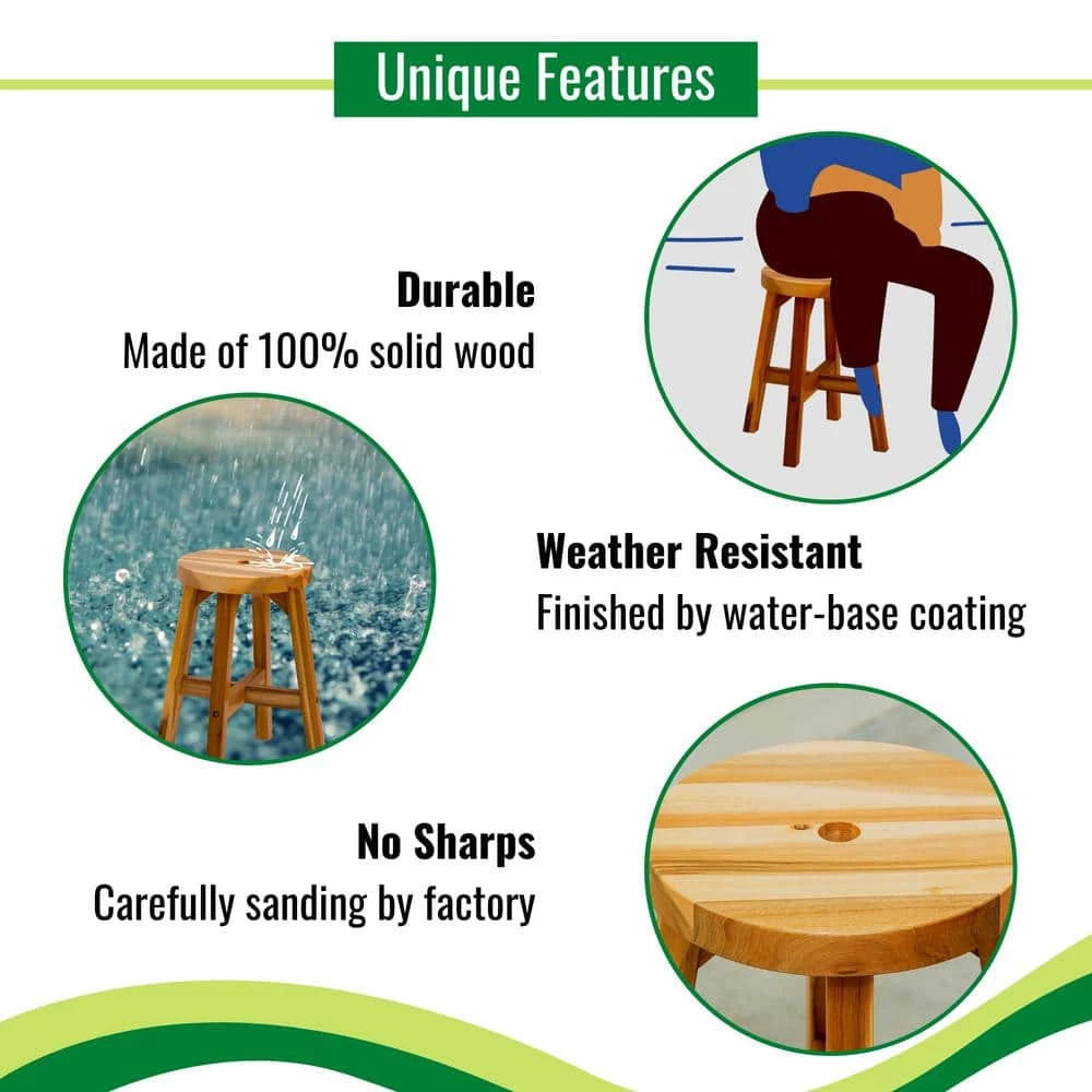 Durable acacia wood stool round is made of 100% solid wood,weather resistant finished by water-base coating.No Sharps Carefully sanding by factory,you can safe to use.It is suitable for dining stool and outdoor space.The wood material allows this stool to blend into virtually any decor.Easy storage to save space when not in use.