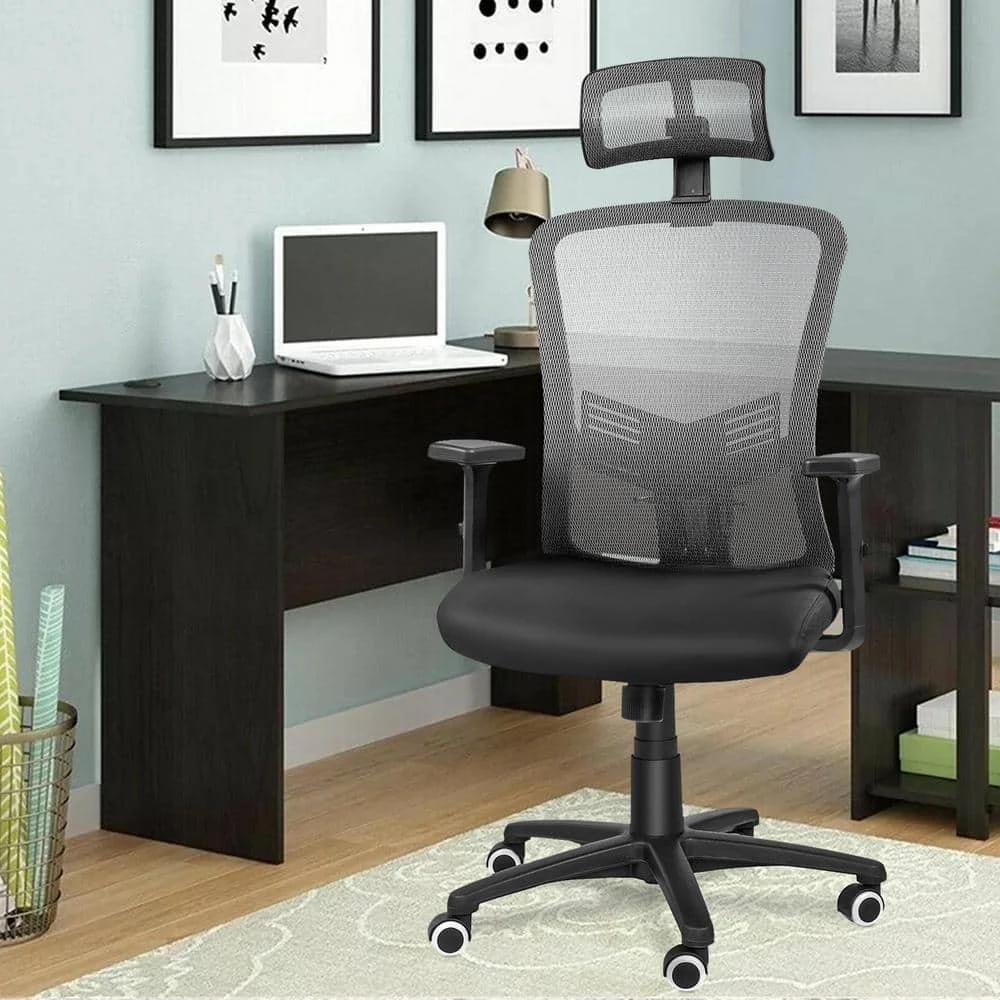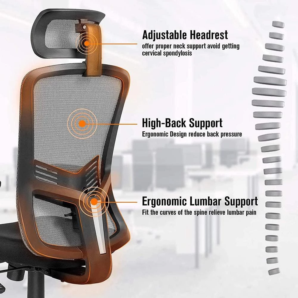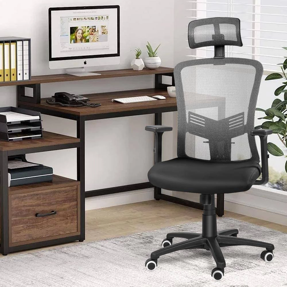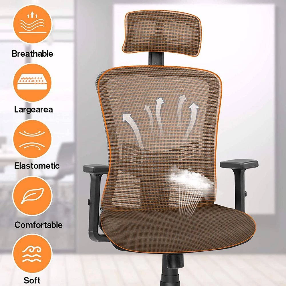 Enjoy superior comfort and support all day long with this ergonomic executive office chair. Our high-back Executive chair is ergonomically shaped with built-in adjustable lumbar support and armrests. The tall back is made of high-density mesh and plastic frame, offer welcoming support and breathable comfort. When you have time to rest, this desk chair reclines up to 135° to find the perfect angle for reading or napping. The 5 sturdy yet nimble casters move the smoothly and quietly.