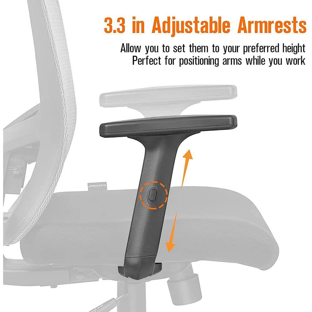 - 3.3 in. adjustable armrests: allow you to set them to your preferred height perfect for positioning arms while you work
