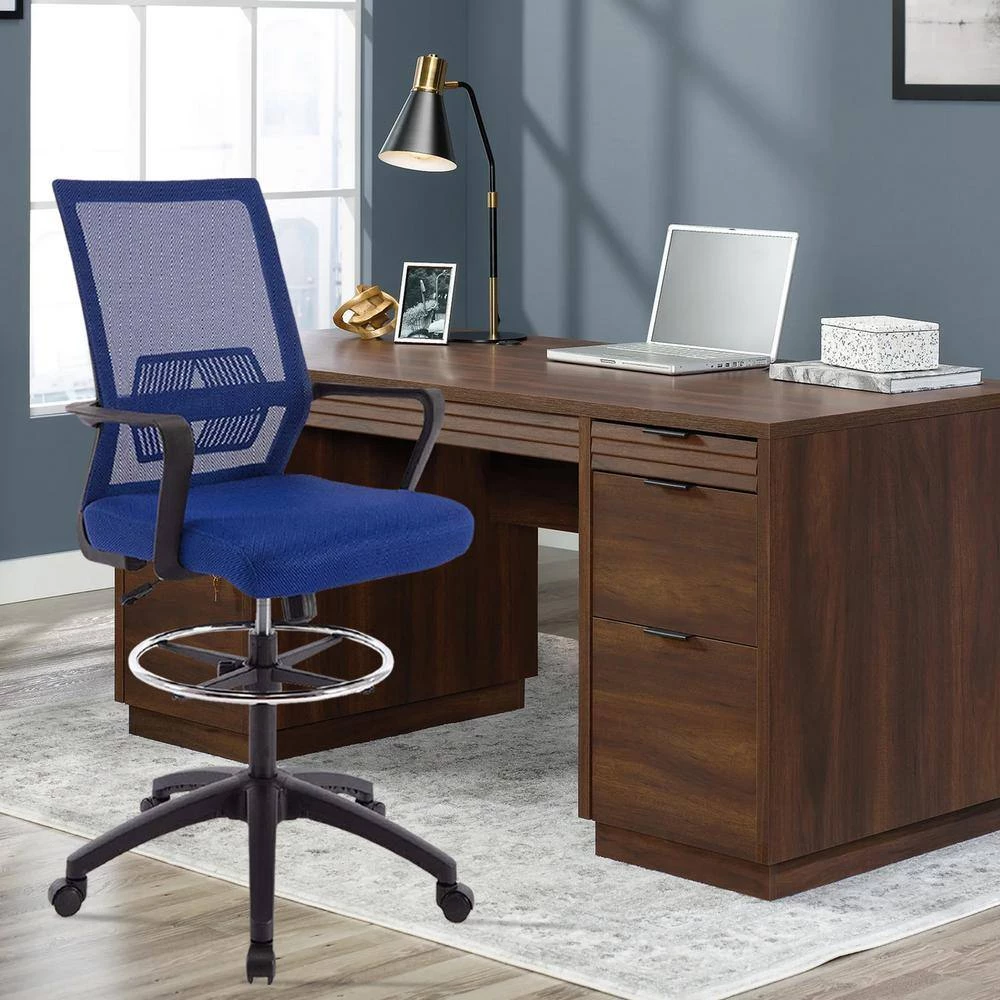 This drafting chair is designed with an adjustable seat height to satisfy your different needs of table height, which will offer you a comfortable seating experience and improve your work efficiency. The body-hugging back design fits your body perfectly and the massage lumbar support will relieve your backache effectively. The equipped footrest and armrests could relax your arms and legs. Five wheels on the base offer easy and smooth motion on the floor.With its sophisticated appearance, this modern drafting chair is suitable for both home. and office. You could finish your job efficiently.you deserve to have.