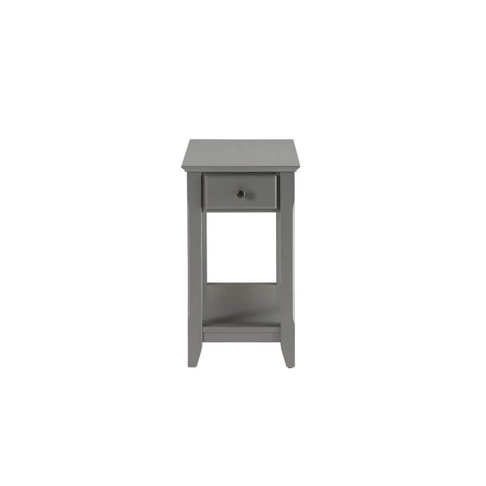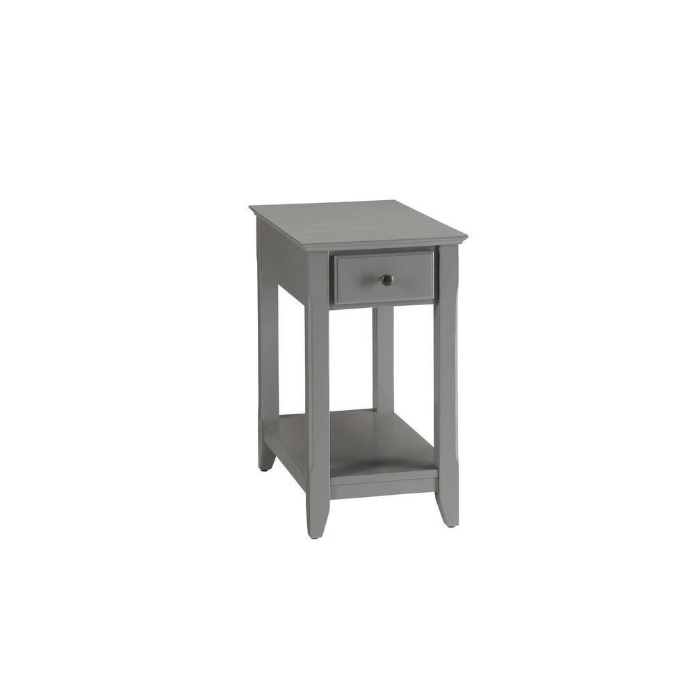 With transitional styling and skinny footprint, this side table collection does not take away from living space while still offering open storage as well as a drawer.Whether youre looking to keep things quaint and country or simply organize your home this one-drawer farmhouse side table will satisfy your design desires.It is sure to blend in perfectly with your interiors style.