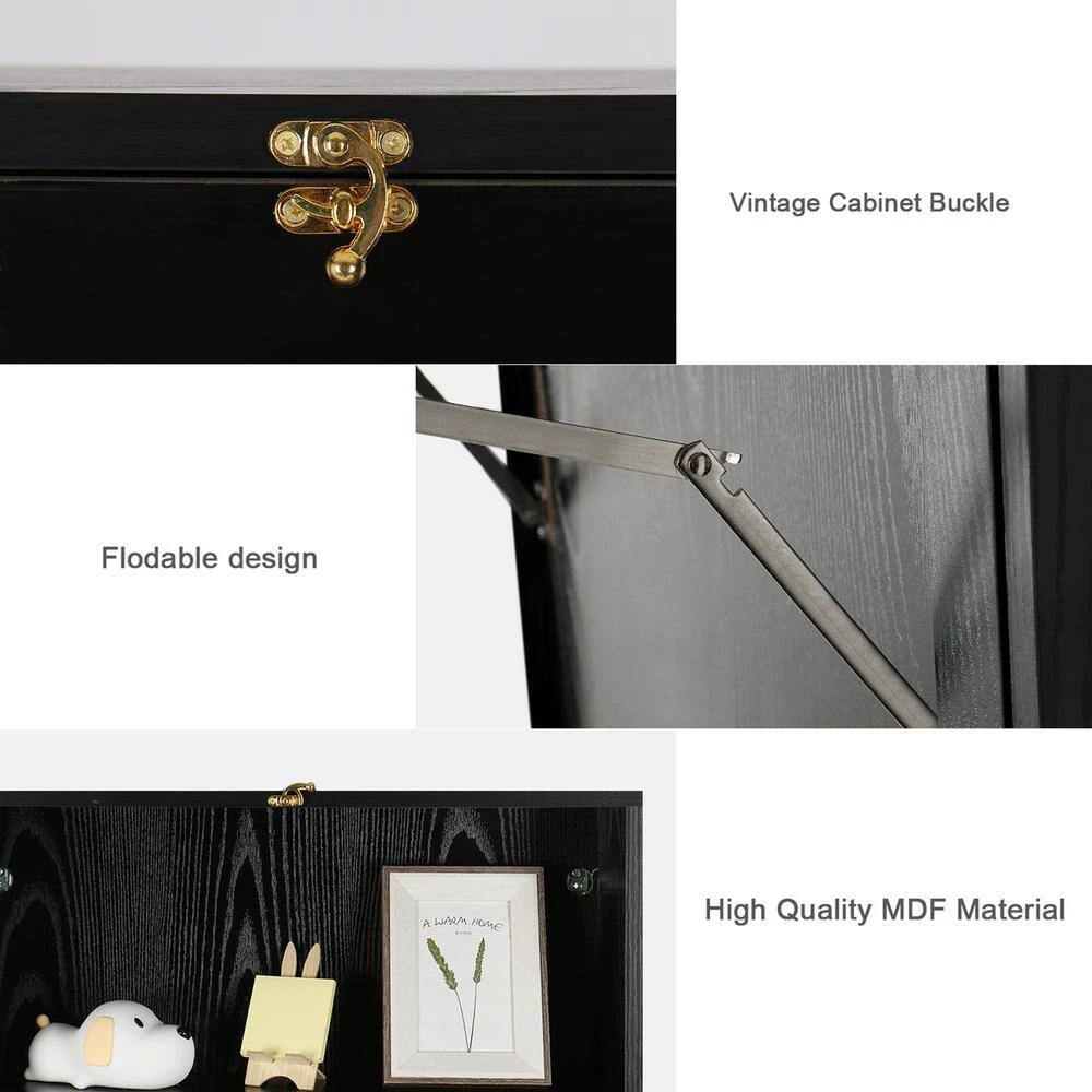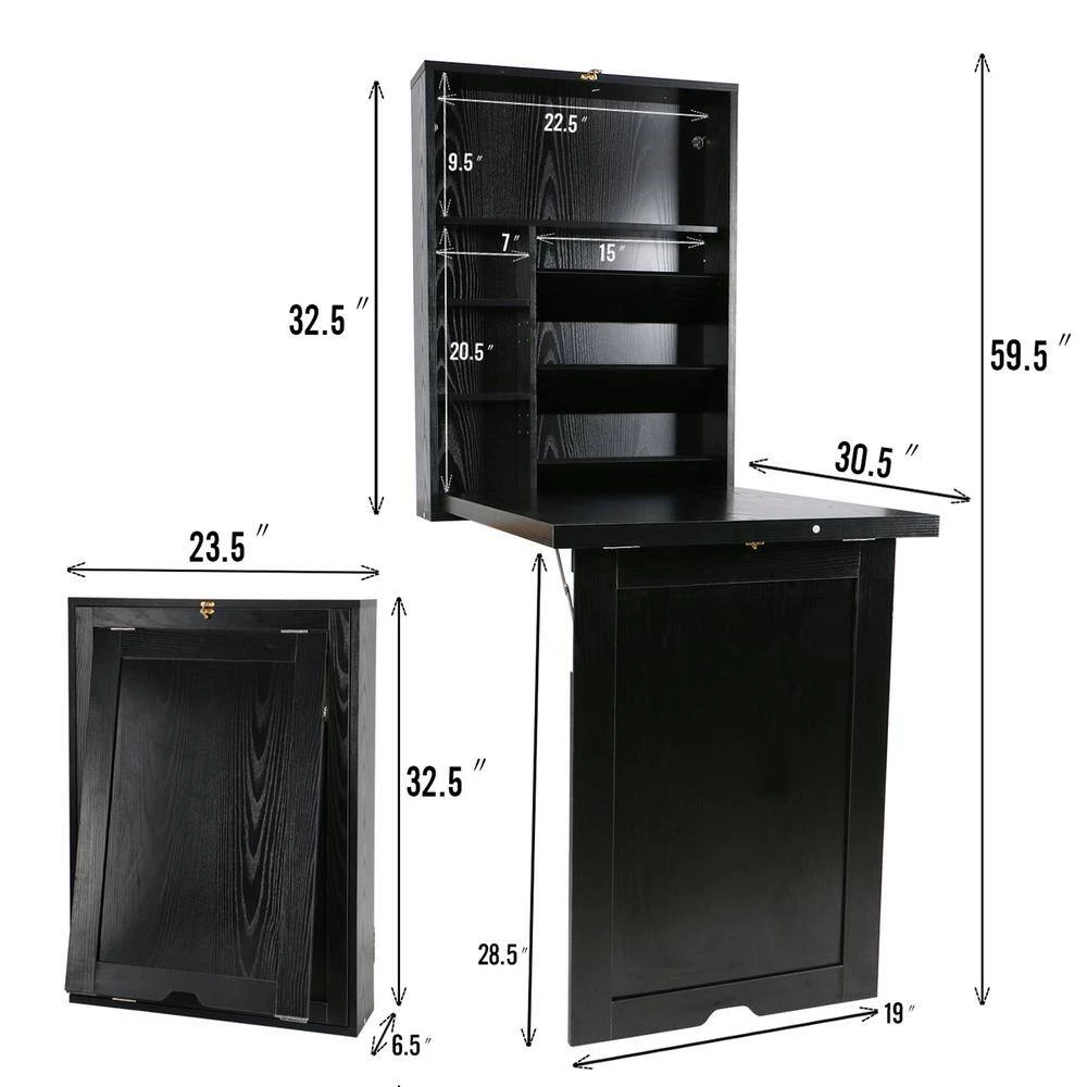 This foldable wall-mounted computer desk is very beautiful. The simple lines and stylish design add a modern touch to your home or office. The simple appearance makes our foldable computer desk match other furniture very well. It is very convenient, the unfolded size is: 30.5 in. W x 23.5 in. D x 59.5 in. H, The size after folding is: 6.5 in. W x 23.5 in. D x 32.5 in. H. It doesn’t take up any space. You can unfold it when you use it. On the contrary, you can fold it up after the office is finished. and it provides spacious storage for you to store and display you items. With 2 adjustable shelves, it also can meet your different needs. and Our wall mount computer desk is made of high quality MDF material, it is sturdy and strong enough for your daily use. It can be used as a computer desk when expanded and a cabinet when folded, this wall mounted desk is perfect for bedroom, living room, reading room, office or other place you want.