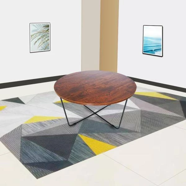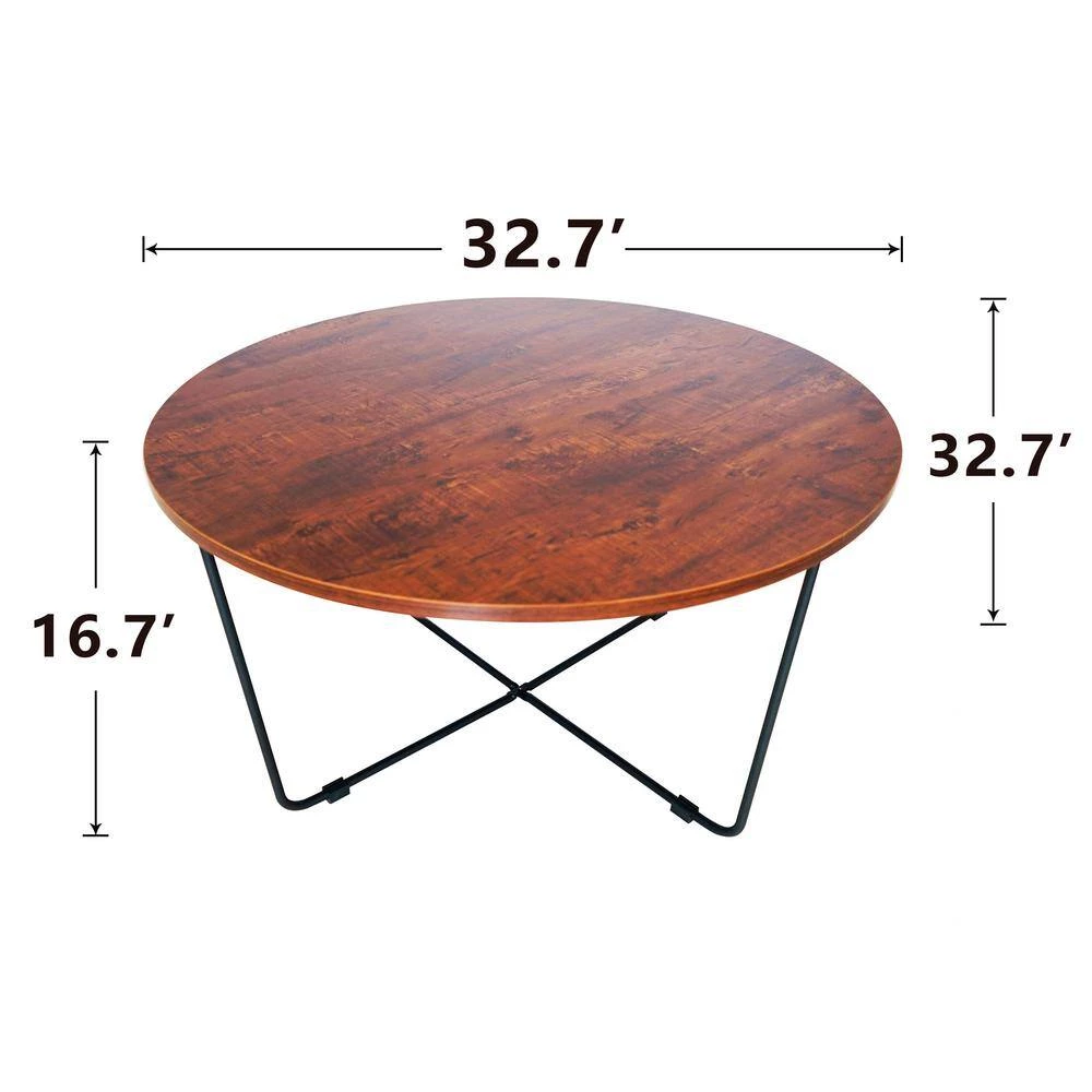 The industrial-style brown sandalwood coffee table can match a variety of decorative styles in the living room. The X-shaped metal feet make the table more stable and durable. The round design provides enough space for you and your friends to read magazines on the table or play board games.Easy and fast assembly.