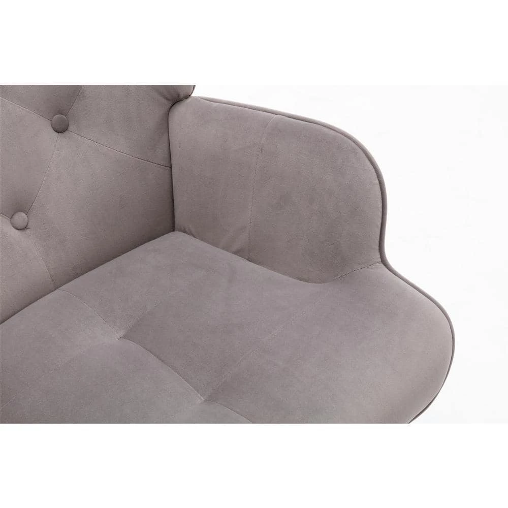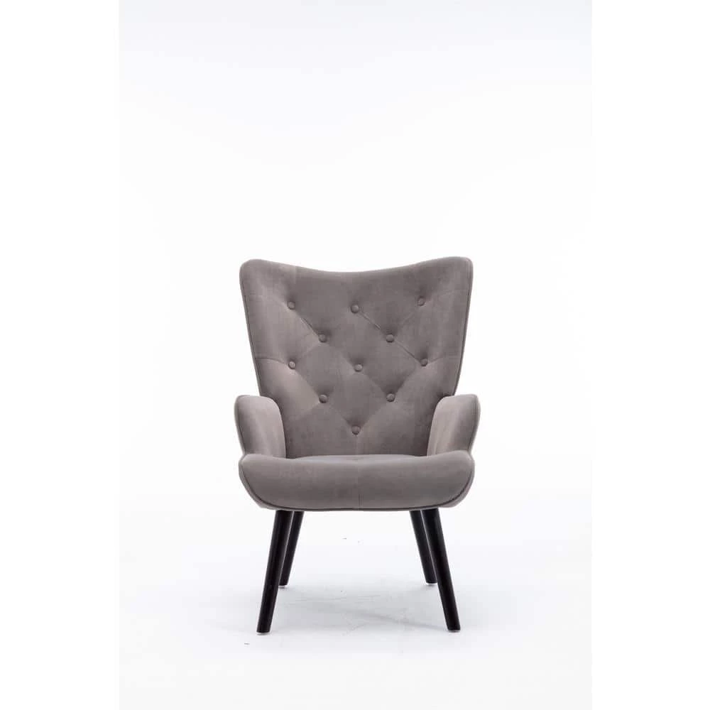 Perfect for rounding out your home with a handy perch, an accent chair like this is a great option curling up with agood book or settling in for a TV binge, while also lending your space an on-trend look. Crafted from metal, solid wood, and manufactured wood frame. Round arms, a camelback, and button tufting round this piece out with eye-catching mid-century-inspired touches.