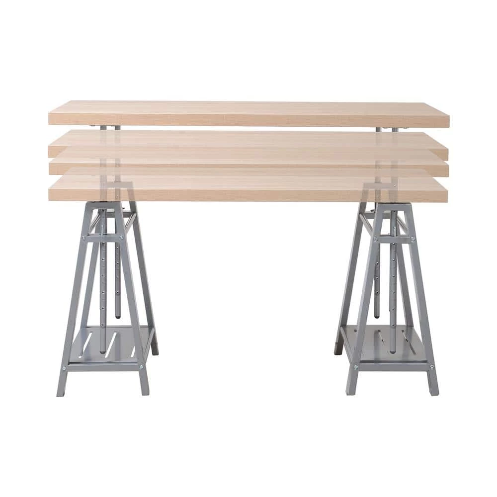 This striking contemporary desk can be adjusted to 9 different heights ranging from 25 in. to 36 in. The cross hatch birch laminate top is a beefy 1-1/2 in. of hollow core thickness. A sturdy metal A Frame base system supports the desk. Easy to assemble.