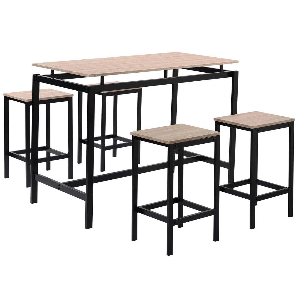 5-Piece Oak Rectangle Wood Top Counter Height Table Set Dining Table with 4-Chairs by Siavonce
