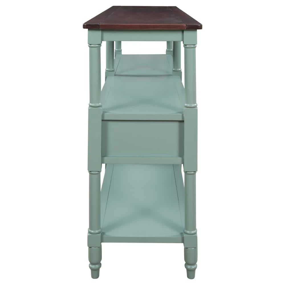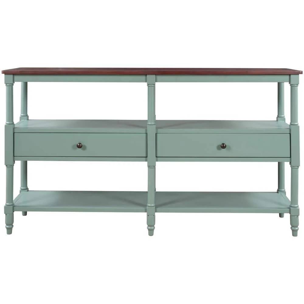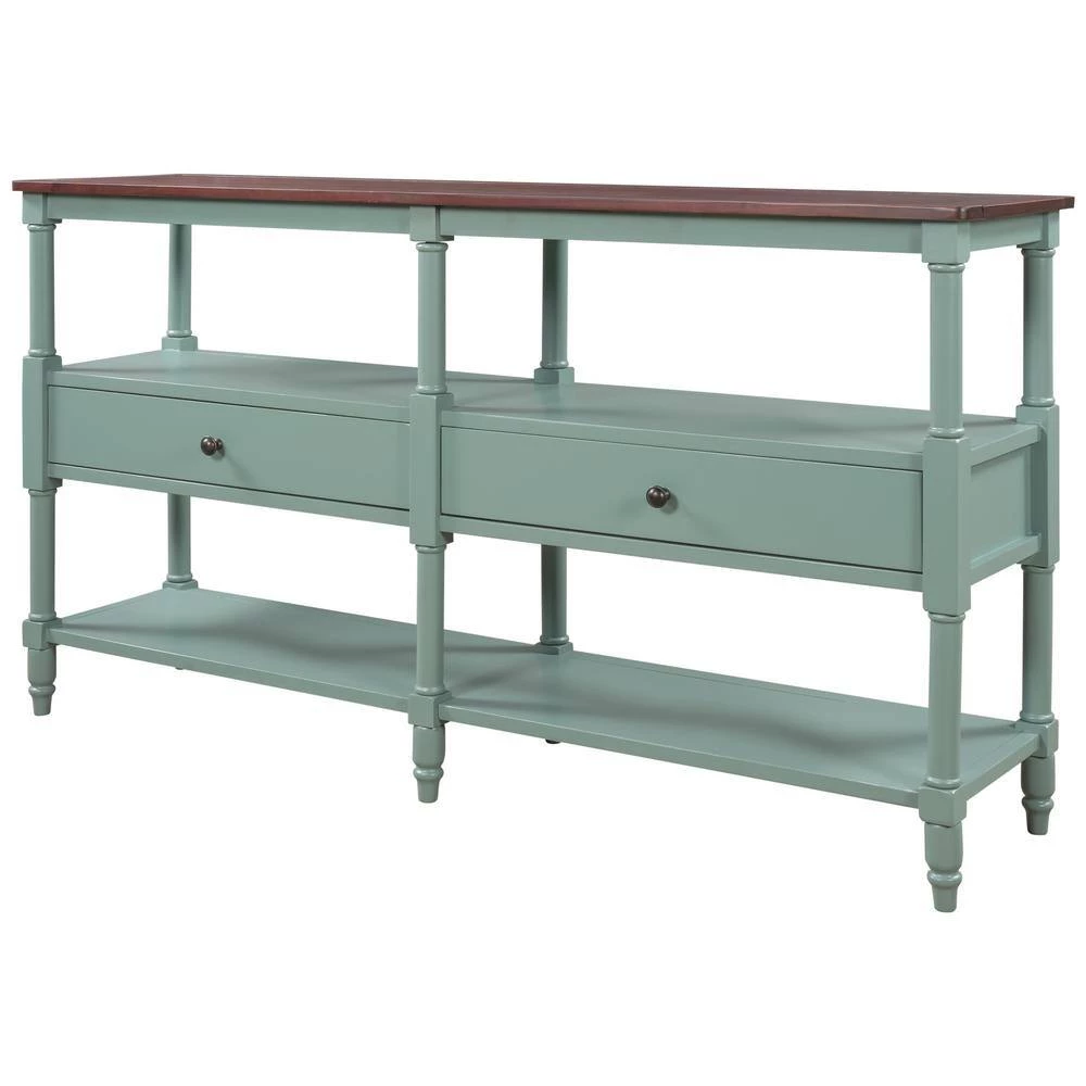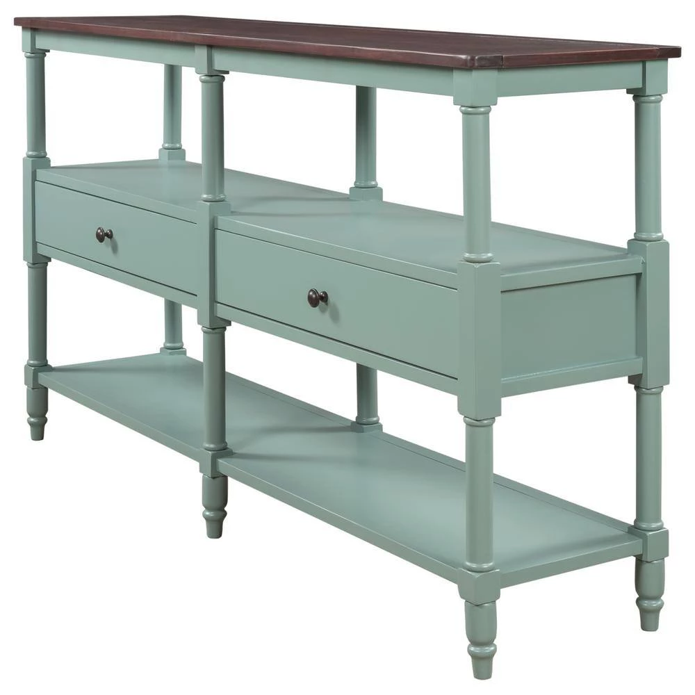 A hallmark antique style, streamlined silhouette and weathered finish make this elegant console a must-have-piece for your living room, hallway or dining room with its versatile nature.Tabletop weight capacity: 155 lbs.; Shelf weight capacity: 88 lbs.; Single-drawer weight capacity: 55 lbs. accessories and more on the expansive shelving or neatly tucking it away in the dual ring knob-drawers to minimize excess clutter.you deserve to have.