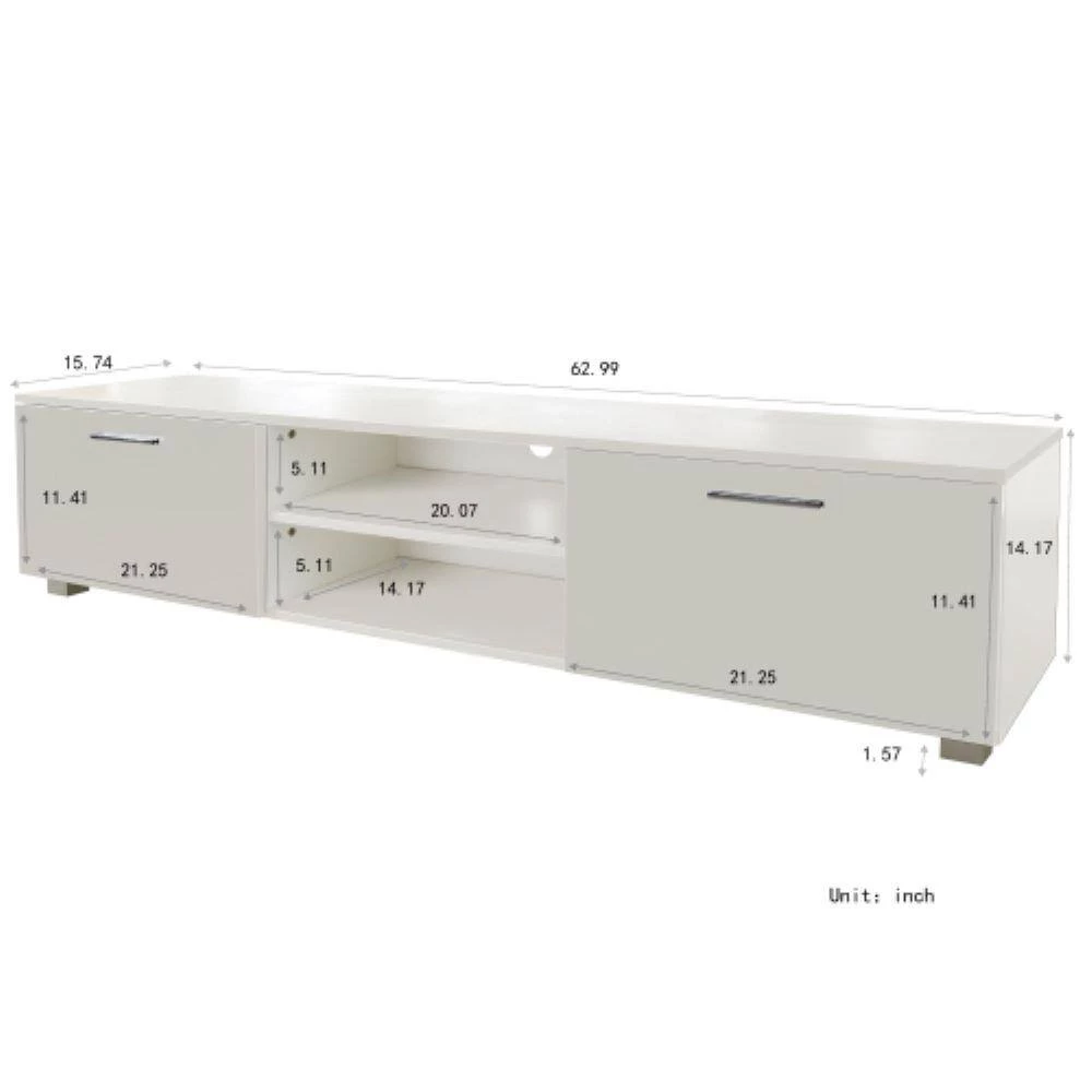 - Size of TV cabinet is 63 in. L x 13.8 in. W x 17.7 in. H which is recommended for TVs below 70 in.