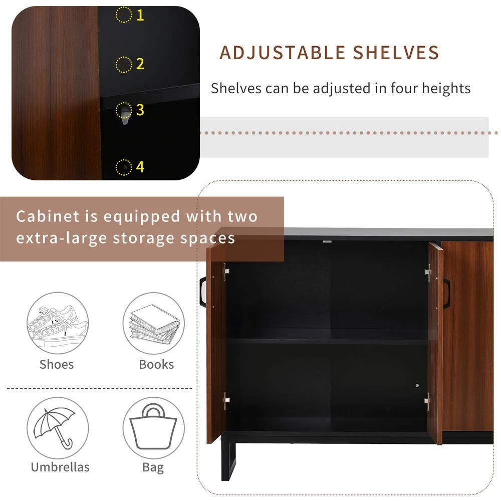 - Large storage space: this cabinet is equipped with two extra-large storage spaces, with two opposite doors on the left and right, both storage spaces are divided into upper and lower floors by shelves, and the shelves can be adjusted in four heights, so that you can adjust the appropriate space size to place your objects