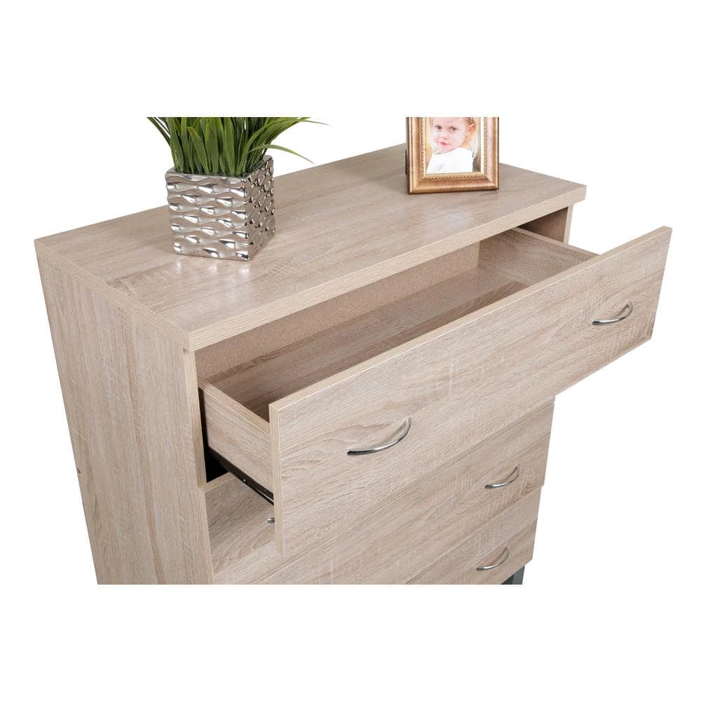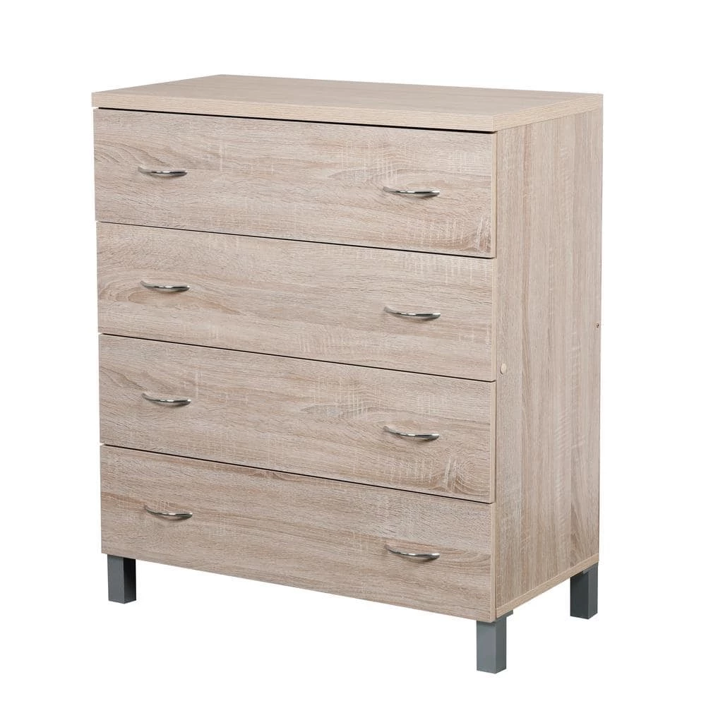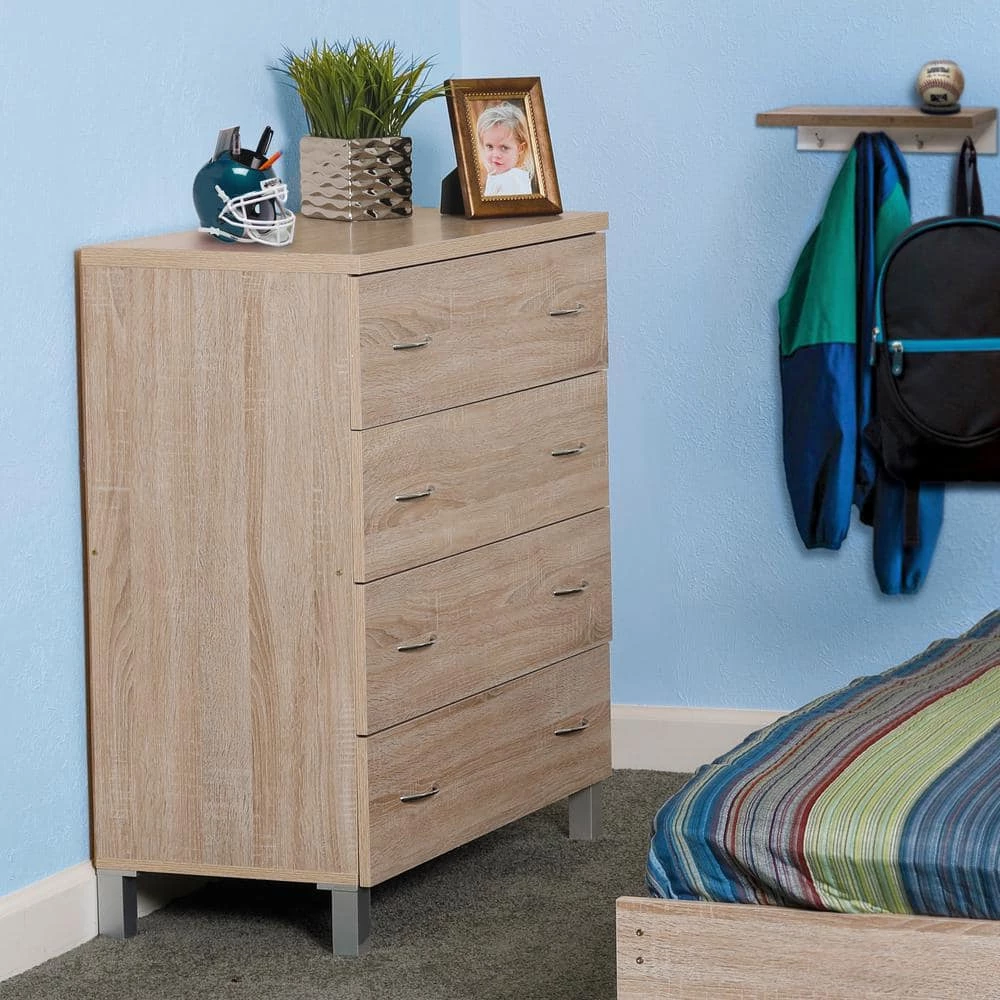 Bring contemporary function and storage to your child’s bedroom with this four drawer chest from OS Home and Office Furniture. Drawers are spacious and utilize sturdy metal guides. Attractive metallic feet.