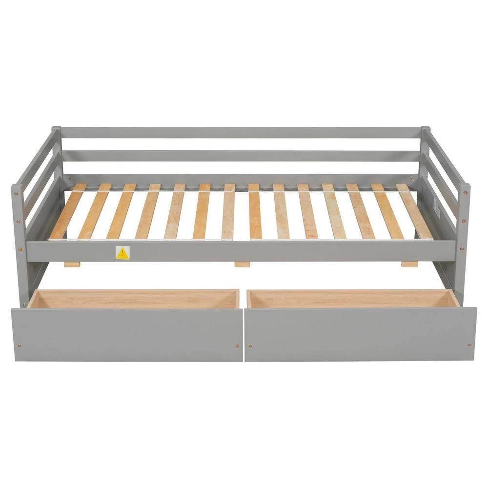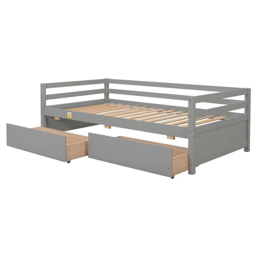 This twin size daybed bed comes in a sophisticated and clean-silhouette style appearance, emphasizing the elegance and simplicity of the piece. The versatile framework of this bunk bed not only provides spacious sleeping area but can also function perfectly as a sofa. Revealing the great capacity the bed has in launching many unique combinations that can let your imagination run wild. Moreover, the 2 hideaway drawers integrated provides ample storage space to keep your room neat and concise.it can also serves as a twin size bed for children and the compact design makes it suitable for any room, living room, bedroom, kids room, spare room, etc.