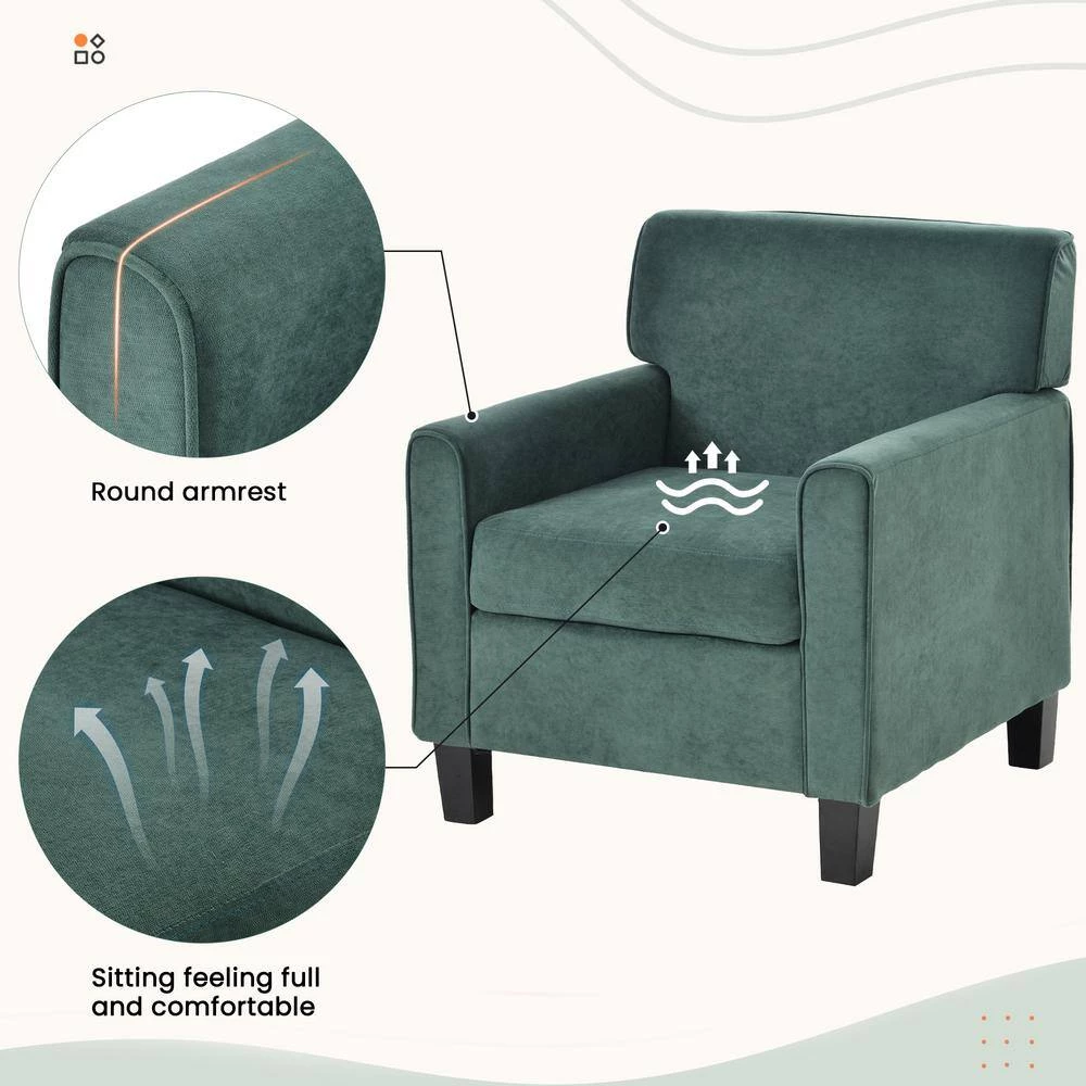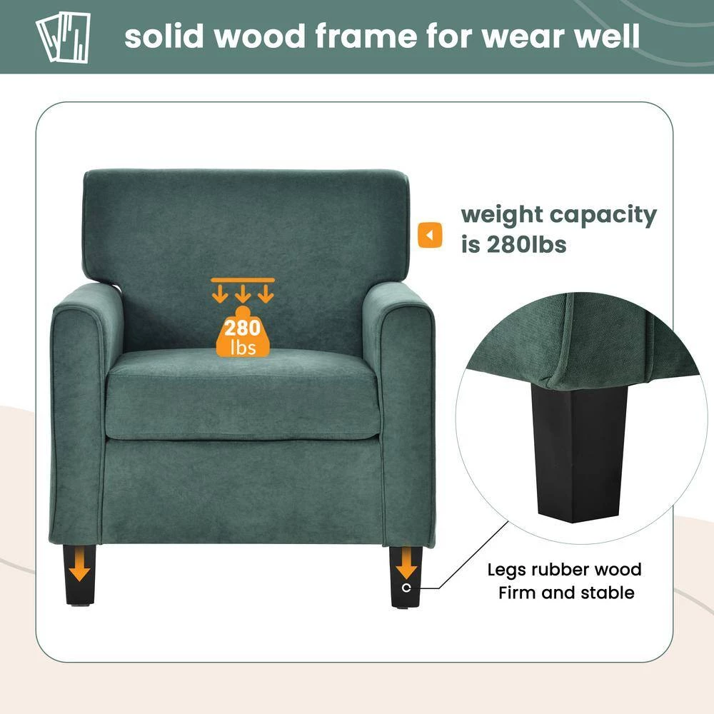 - Accent upholstered armchair is made of solid wood frame and rubber wood legs for wear well firm and stable.