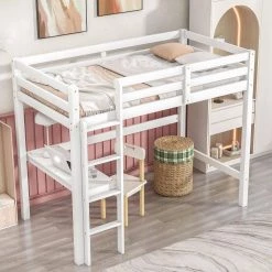 White Twin Size Loft Bed with built-in desk by Siavonce