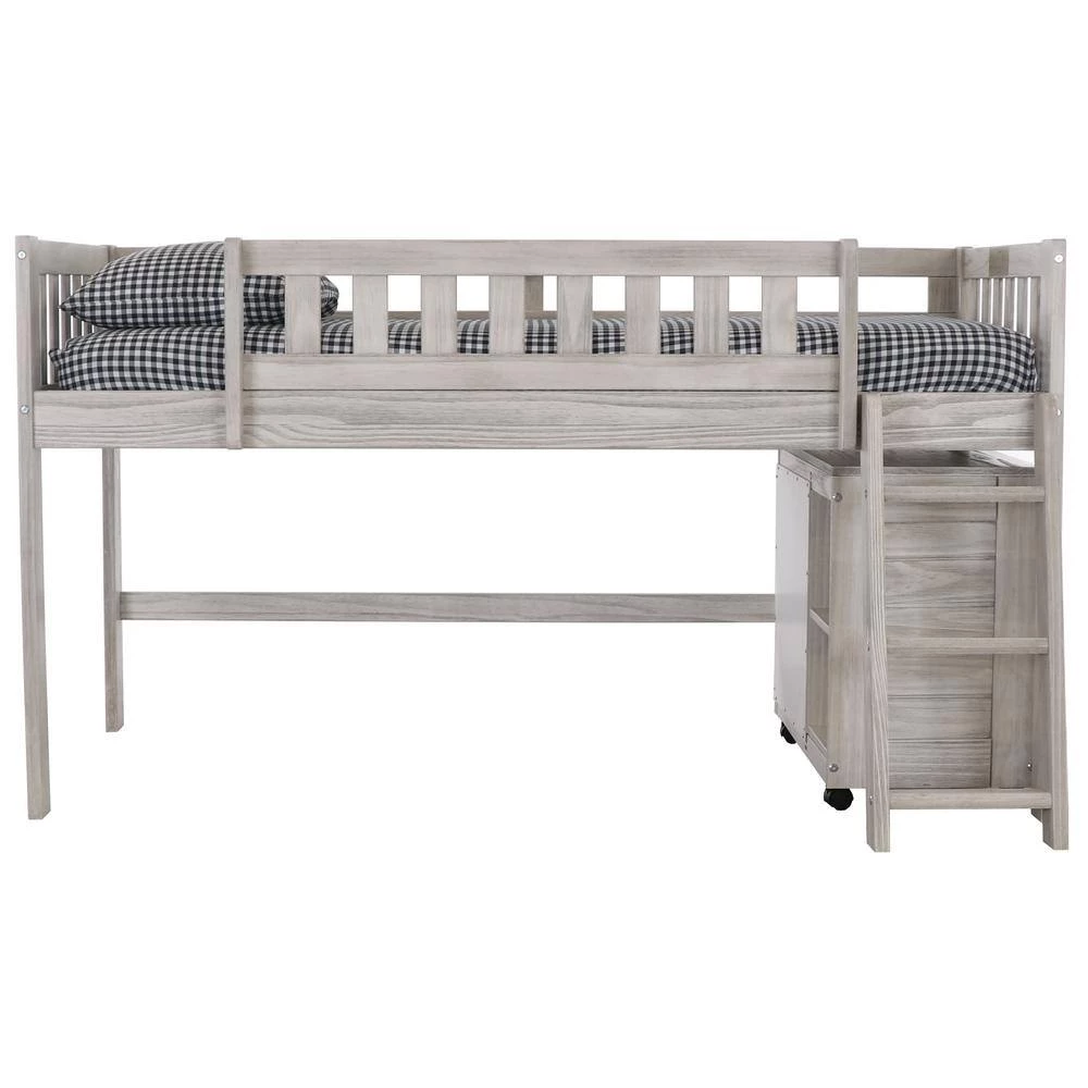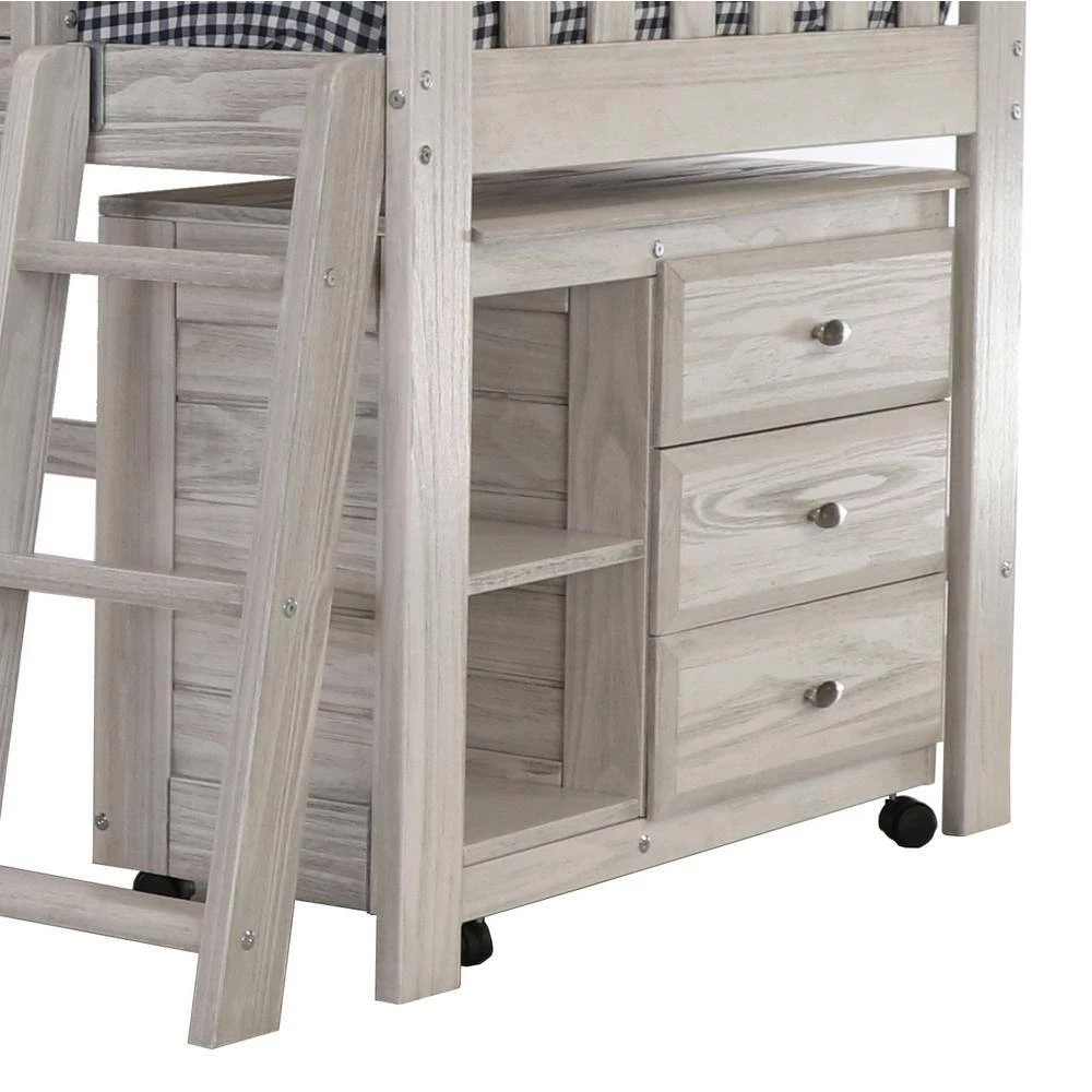 Add space as well as a special play area in your child’s bedroom with this sturdy loft style bed. Sturdy solid pine finished in a pleasing honey finish in an interesting mission style. The ladder fits on and attaches to either end. The sturdy slat system is included, meaning your bed is mattress ready eliminating the need to purchase a bunkie board or box spring. Rest easy as This bed has been tested and certified to meet the ASTM 1427-07 regulations set forth by the Consumer Product Safety Commission (CPSC) Complete your bedroom with this versatile three drawer chest. Drawers utilize metal guides on nylon rollers. Two spacious shelves are also included. The entire item is on mobile and utilizes 4 sturdy casters.