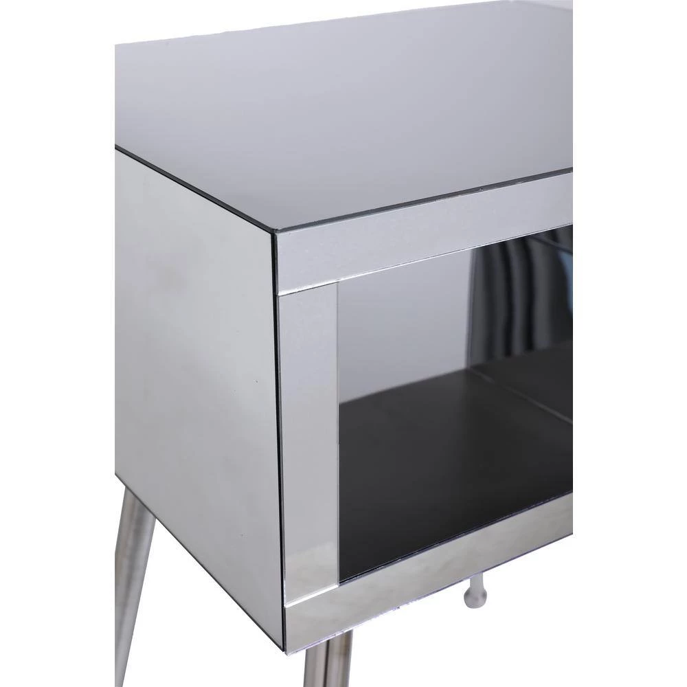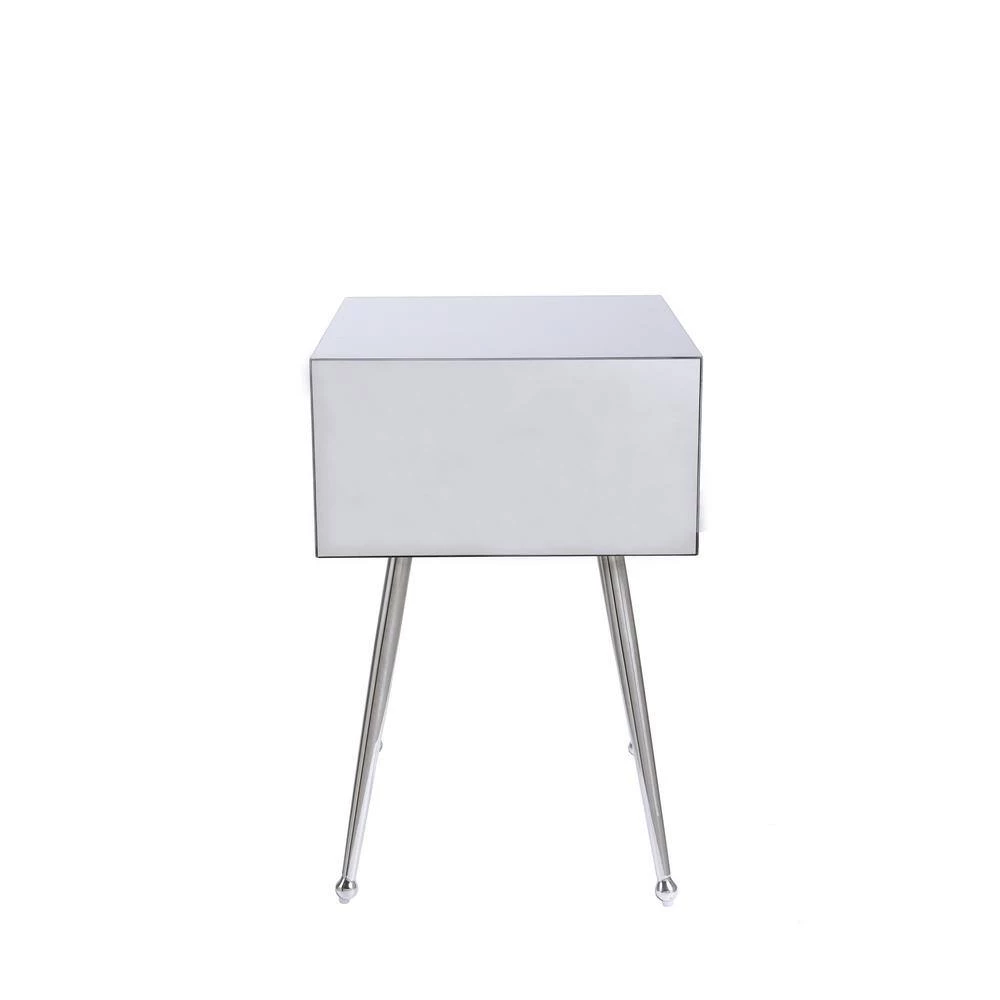 Mid-century modern-chic sums up our Night Stand nicely. Its constructed of smooth, well-grained Acrylic and steadied with tapered round legs in a light and appealing finish. A unique beveled edge detail that helps this piece to truly stand out in your living space.