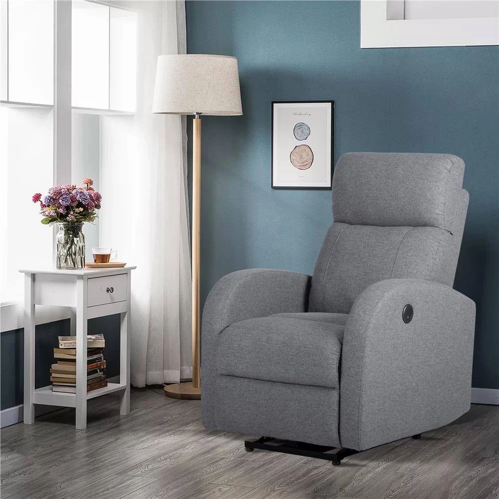This recliner design offers distinctive comfort, support and relief thanks to thoughtful construction. Best of all, are the smooth power mechanism and convenient USB port that allows you to charge any device while you unwind. The gray recliner is made of fabric – 100% polyester, which is very soft, comfortable and stylish. There is such a recliner in the home, which can add a stylish and elegant atmosphere to the home. Perfect for living rooms, bedrooms, theater rooms and media rooms, and more. It does not need to take up a lot of space, and when you are tired from study or work, this recliner can serve you, help you relieve your fatigue all day, and make you comfortable every day. When you are tired but don’t want to lie on the bed before taking a bath, this recliner is a good service for you. You can lie on to rest, watch TV, play on your mobile phone, and more. And its frame material uses solid wood and plywood, which is very natural, environmentally friendly and healthy. You can use for a long time and it is not easy to rot. It has the advantages of good decoration, high temperature resistance, no moisture, and not easy to be eaten by insects.