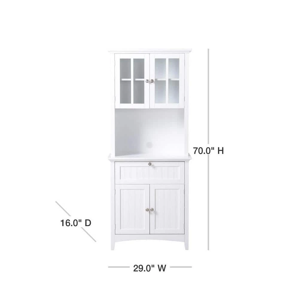Add much needed storage to your kitchen with this truly functional buffet and hutch. It has glass doors for display and solid doors for bigger items. Also includes a spacious open area for your microwave, coffee maker, or food processor.