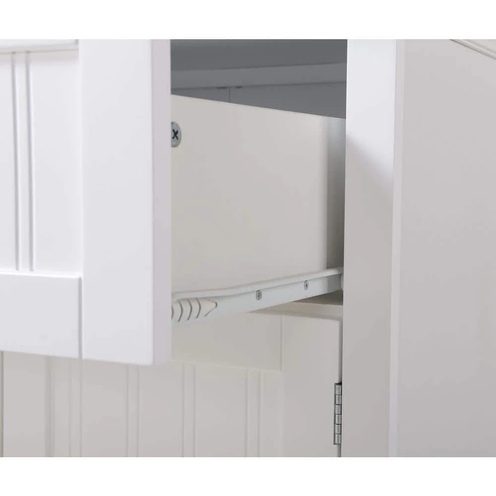 - Soothing white laminate side panels and shelves