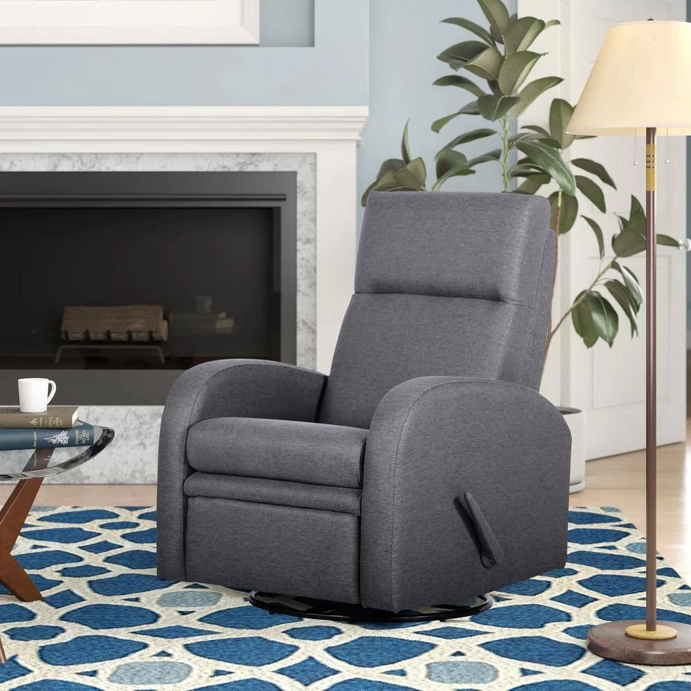 The gray recliner is made of fabric – 100% polyester, which is very soft, comfortable and stylish. There is such a recliner in the home, which can add a stylish and elegant atmosphere to the home. Perfect for living rooms, bedrooms, theater rooms and media rooms, and more. When it comes to comfort, versatility and functionality, no design does it better than this recliner manual swivel glider recliner. In addition to an impressive range of motion, this piece boasts a sleek, small arc headrest that you can provide for maximum support. Whether you’re relaxing front-to-back, swiveling 360 degrees or stretching out, you will love lounging in this modern retreat. It does not need to take up a lot of space, and when you are tired from study or work, this recliner can serve you, help you relieve your fatigue all day, and make you comfortable every day. When you are tired but don’t want to lie on the bed before taking a bath, this recliner is a good service for you. You can lie on to rest, watch TV, play on your mobile phone, and more. And its frame material uses solid wood and plywood, which is very natural, environmentally friendly and healthy. You can use for a long time and it is not easy to rot. It has the advantages of good decoration, high temperature resistance, no moisture, and not easy to be eaten by insects.